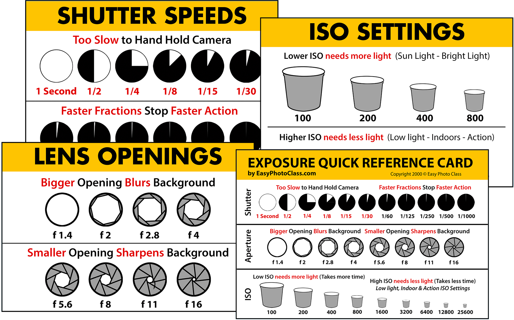 PRINTED CARDS: Exposure Quick Reference Guide Cards printed 3 sizes: 8.5 x 11 (folds to 8.5 x 5.5) - 6 x 8 (folds to 6 x 4) - 3 x 4 (folds to 3x2) and two double sided 6 x 8 instruction guide cards.